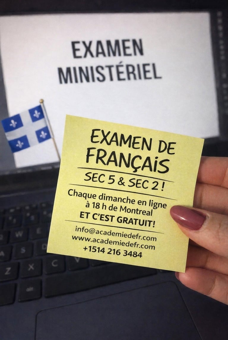 Notre mission est d’accompagner les élèves du secondaire vers la réussite de l’examen ministériel de français grâce à un encadrement structuré, humain et efficace. Nous visons à renforcer les compétences en lecture, écriture et rédaction, tout en développant la méthodologie, la confiance et l’autonomie nécessaires pour réussir l’épreuve avec sérénité.